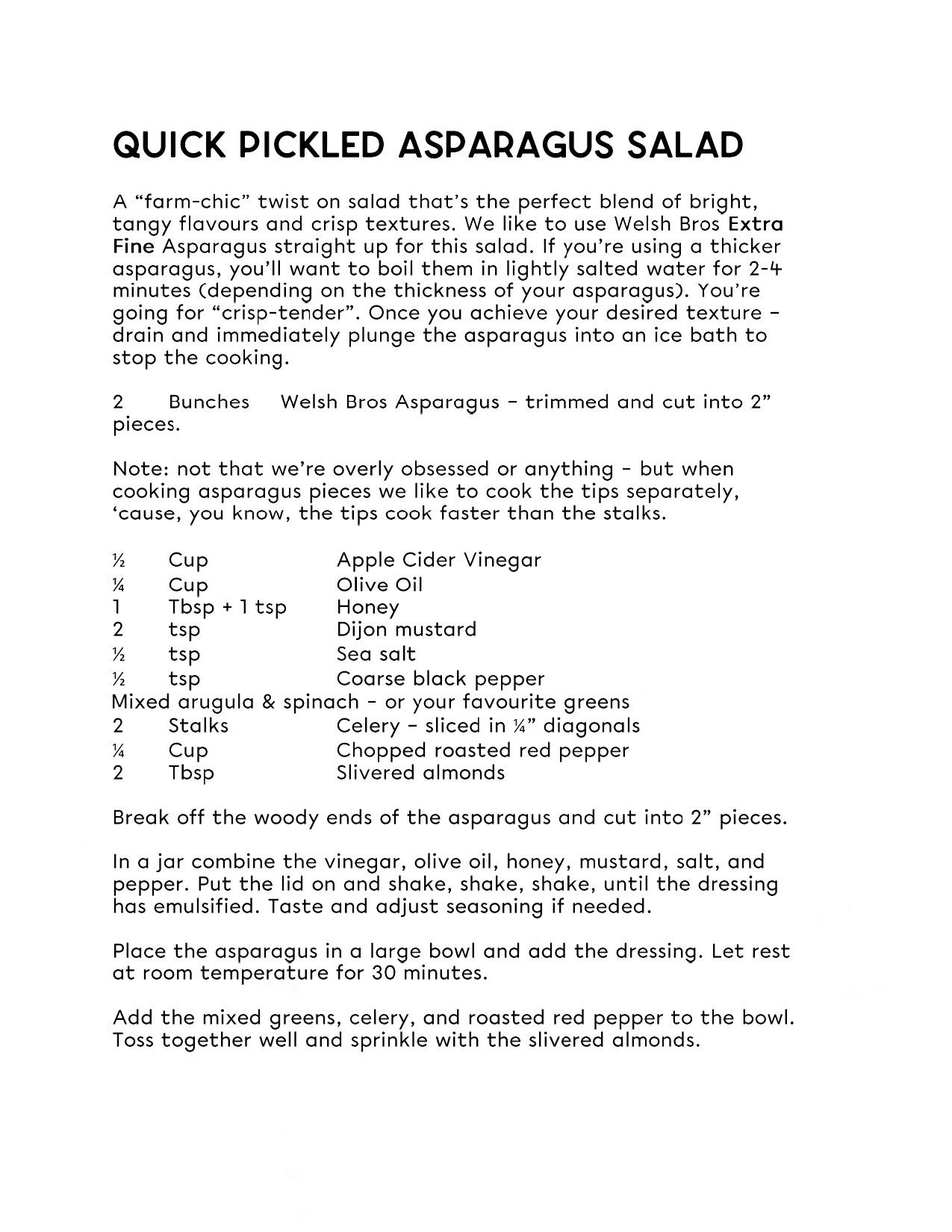 Featuring Welsh Bros Premium. Fresh. Produce., we’re proud to share some of our recipe and hack faves. Now…don’t get us wrong…we love our sweet corn and asparagus straight up – but every once in a while, like when the in-laws drop by, we pull out the good dishes and whip up something fancy!